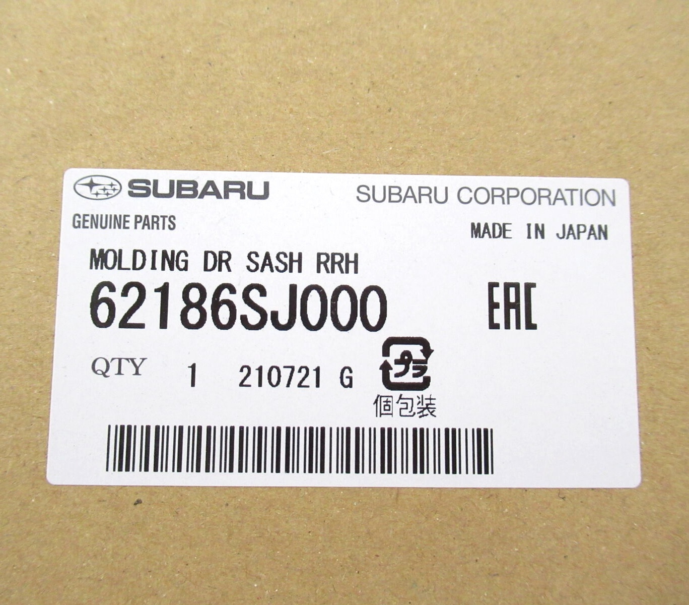 Molding Dr Sash ReaRH 62186SJ000 for Subaru