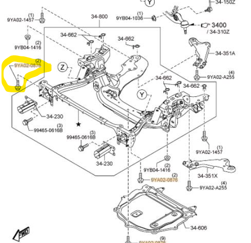 Bolt - Suspension Crossmember - Engine Cradle Front Bolt 9YA0-20-876 for Mazda